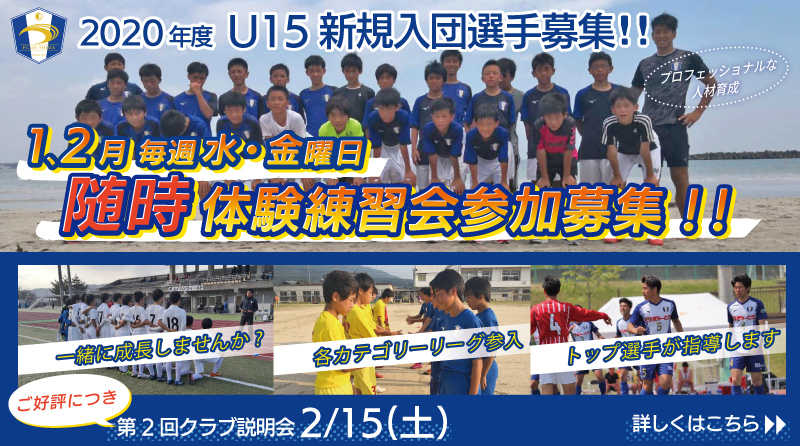 - 2019.12.232020年度U-15 1・2月随時体験募集及び第2回クラブ説明会実施についてアカデミーお知らせ