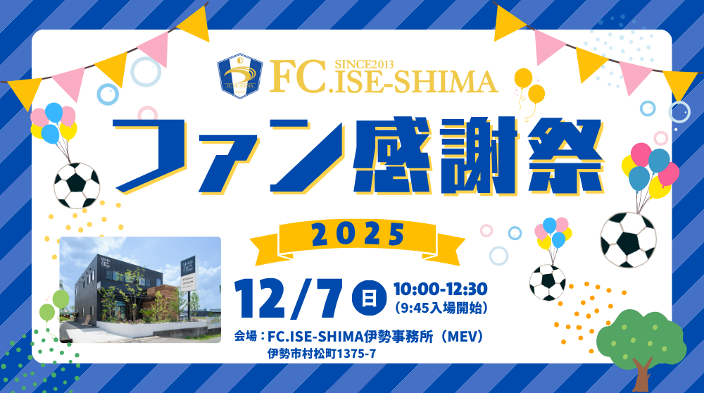 今シーズン、応援していただいた皆さまへの感謝の気持ちを込めて、『FC.ISE-SHIMAファン感謝祭2026』を開催いたします。